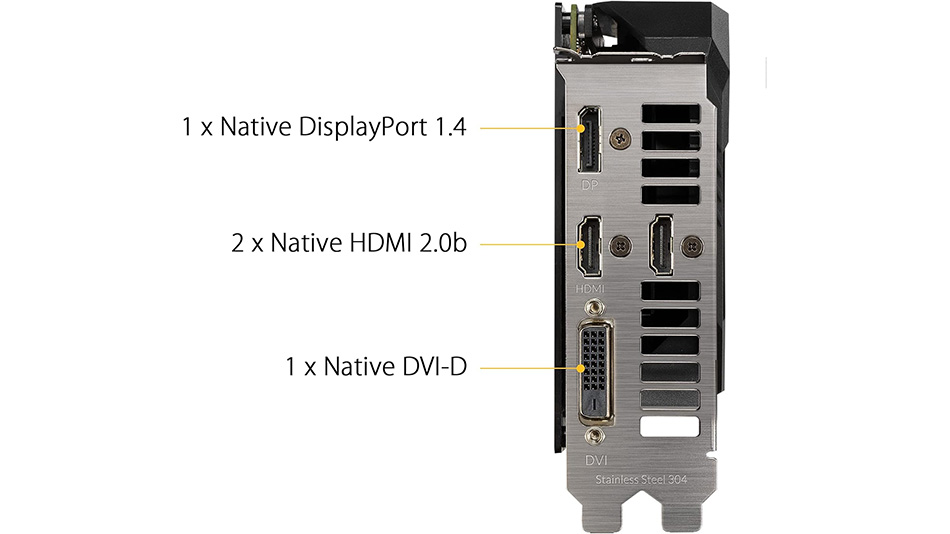 L’ASUS TUF Gaming GeForce 1660 Ti 6G EVO met en avant 2 ventilateurs axiaux non RVB. Il arbore également un dissipateur de chaleur costaud et un design sobre ainsi qu’une plaque arrière pleine longueur. Les 1660 Ti 6G EVO utilise un système de refroidissement puissant. Le dissipateur de chaleur en contact avec le GPU offre une meilleure répartition de la chaleur. Cela permet aux joueurs d’utiliser leur carte aussi longtemps qu’ils le souhaitent sans craindre la surchauffe.