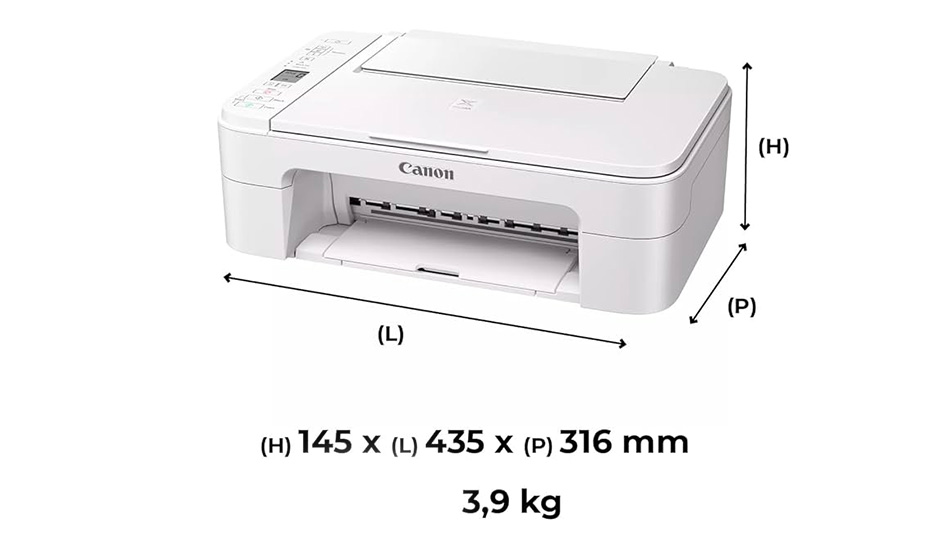 Le TS3351 reste simple à entretenir avec un accès facile aux cartouches en façade. La gestion est classique, avec un accès au compartiment papier à l’avant. Le design moderne et compact s’illustre avec ses dimensions de 14,5 cm x 43,5 cm x 31,6 cm (hauteur, largeur et profondeur) ainsi qu’un poids léger d’environ 3,9 kg. D’autre part, l’écran LCD monochrome de 3,8 cm, s’avère plus grand que sur certains modèles d’entrée de gamme comme la TS3520. Enfin, le bac arrière de chargement papier permet de loger jusqu’à 100 feuilles de papier ordinaire. L’imprimante accepte les formats papier classiques tels que A4, A5, B5, et divers formats enveloppes.