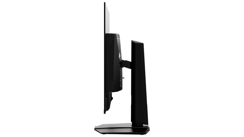 Le design du MPG 321URX se distingue par sa sobriété. Contrairement à d’autres moniteurs de jeu, il ne présente pas de lumières RGB sur les côtés ou les cadres, mais en propose à l’arrière. Il est équipé d’un support stable et compact, prenant peu de place sur un bureau. Ses dimensions de 19 x 28,2 x 9,5 pouces (HWD) et un poids de 21,1 livres avec le support offrent une bonne stabilité. Il est compatible avec le montage VESA et dispose d’ajustements de pivotement, d’inclinaison et de hauteur pour une flexibilité maximale. Le système de ventilation à l’arrière assure une gestion thermique efficace.